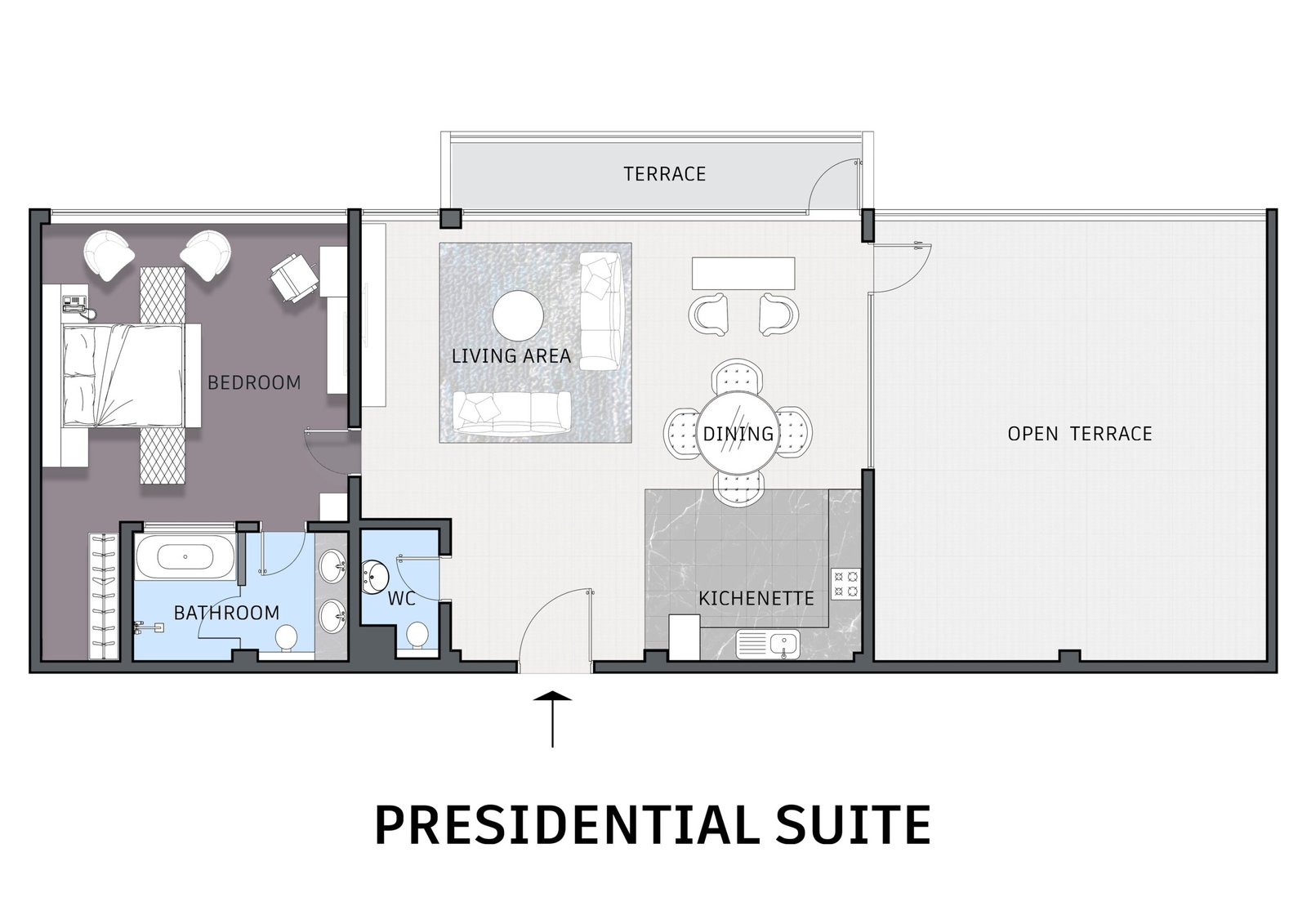 Whether hosting private meetings, entertaining guests, or unwinding in quiet luxury, the Presidential Suite provides an atmosphere of exclusivity and excellence.