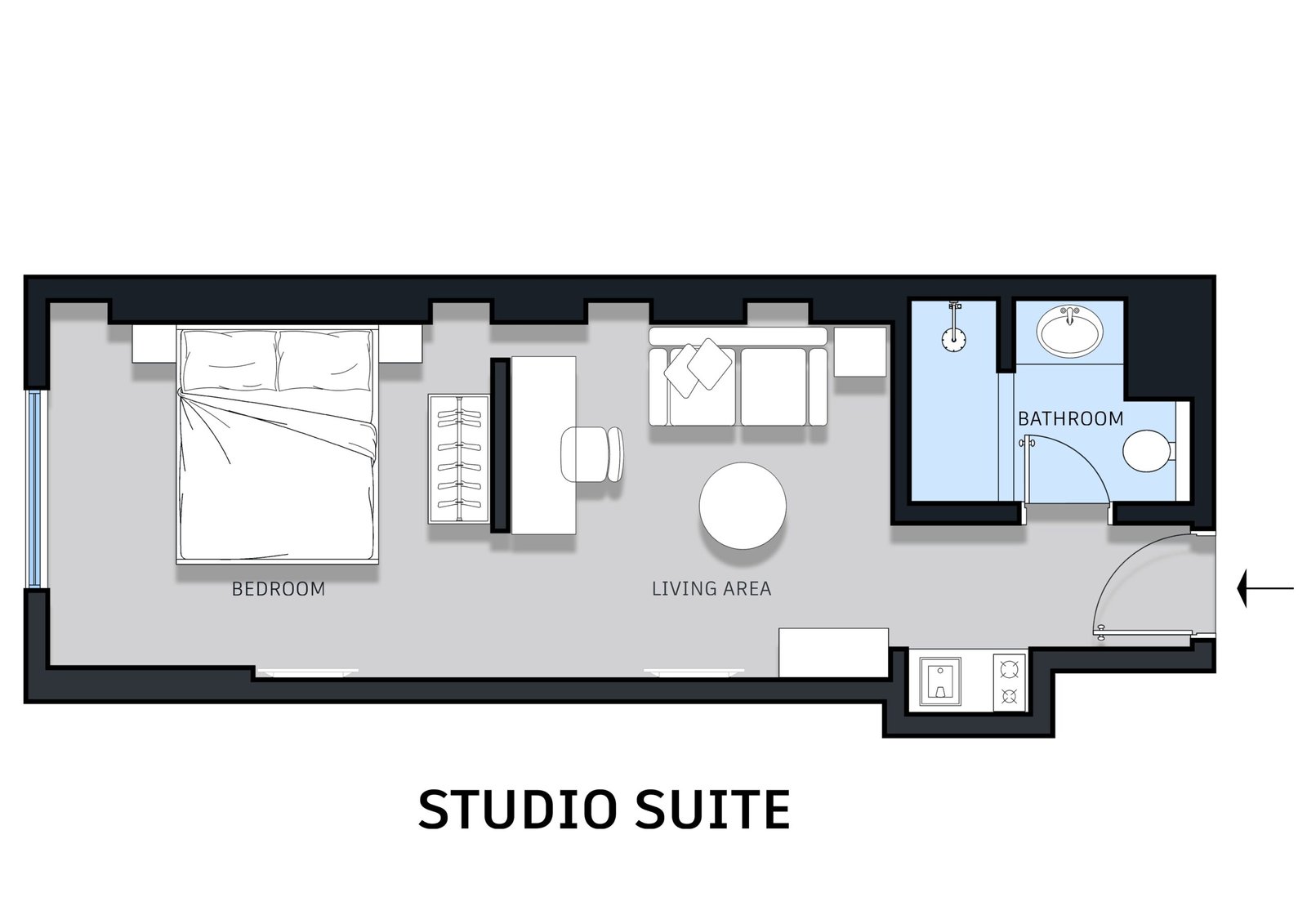 The Studio Suite Double provides ample space for couples or shared occupancy. Its open design allows for easy movement and a relaxed stay. The room is bright, stylish, and perfect for guests who want a bit more room to unwind while enjoying modern hotel comforts.